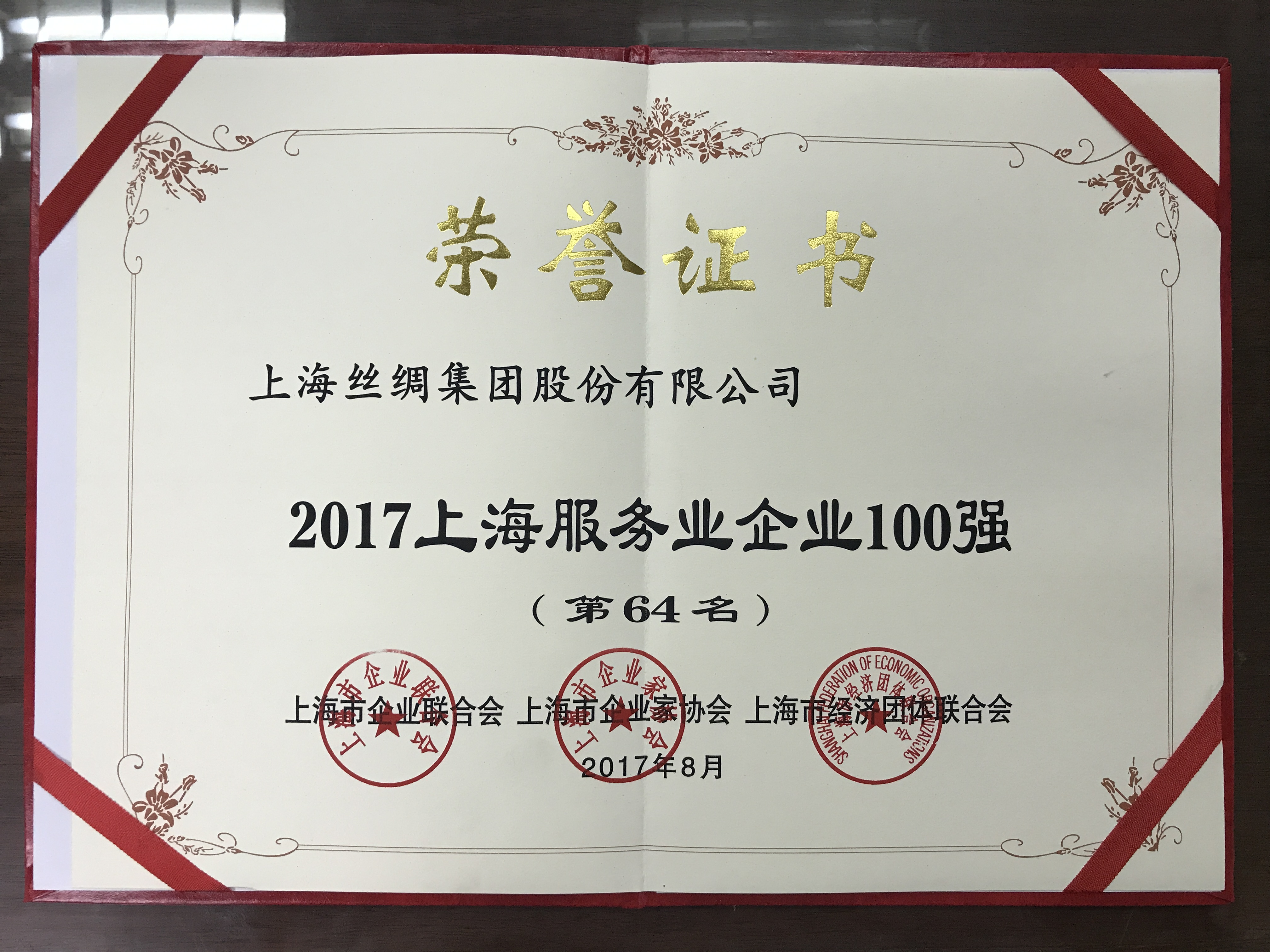 在中國(guó)企業(yè)聯(lián)合會(huì)舉辦的2017中國(guó)服務(wù)業(yè)企業(yè)五百?gòu)?qiáng)排名中,公司獲得第495位。 在上海市企業(yè)聯(lián)合會(huì)舉辦的2017上海服務(wù)業(yè)企業(yè)百?gòu)?qiáng)排名中,公司獲得第64位。