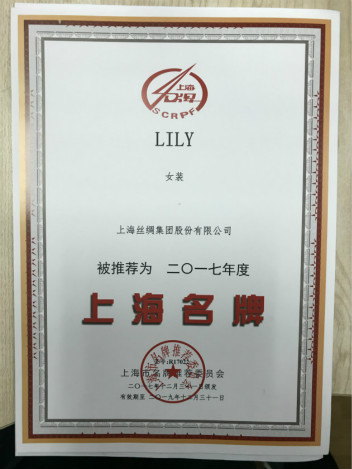 公司的LILY女裝再次當(dāng)選2017年度上海名牌。