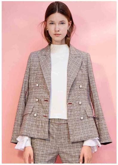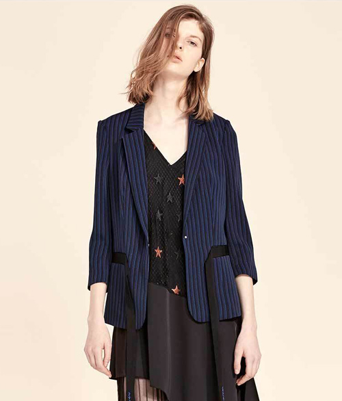 西裝纖細(xì)的豎條紋低調(diào)不張揚(yáng),散發(fā)柔和的質(zhì)感,利落七分袖設(shè)計(jì)自帶氣場,塑造干練的職場女性范兒