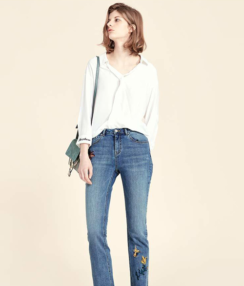 褲子修身版型搭配磨白破洞設(shè)計(jì),內(nèi)斂又不羈,腳口不對稱及毛邊處理,更顯休閑時(shí)髦,隨意搭配哪種上衣都變身時(shí)尚ICON